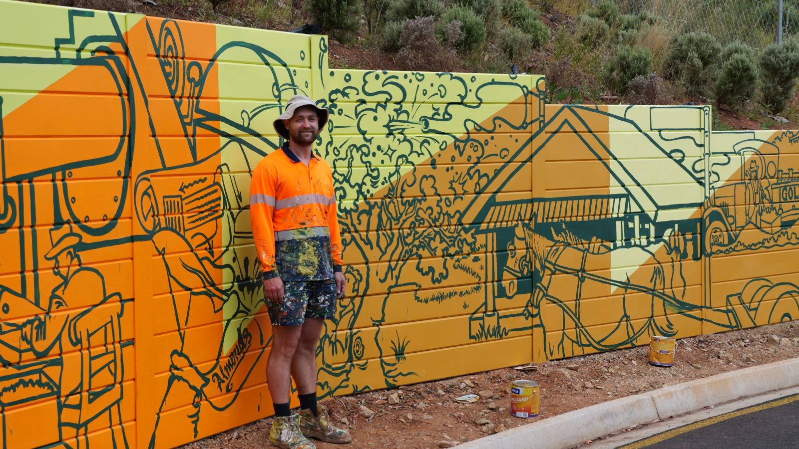 Mitch Walder has been commissioned to transform 85 square metres of grey concrete retaining all at Tonsley Innovation District into an art piece representing the sites history.